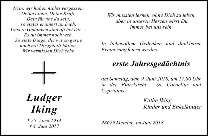 Hier finden Sie alle Traueranzeigen aus der Zeitung, die bisher für Ludger Iking erschienen sind. Weitere Traueranzeigen, die in der Zeitung erscheinen, werden hier ebenfalls aufgelistet