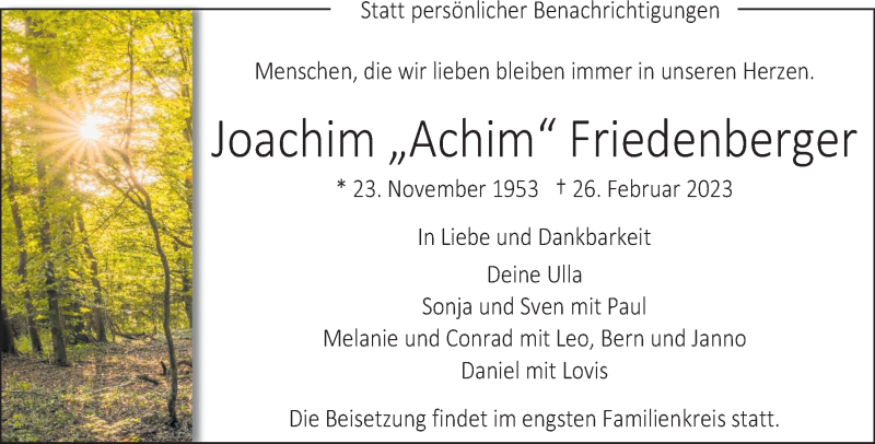 Hier finden Sie alle Traueranzeigen aus der Zeitung, die bisher für erschienen sind. Weitere Traueranzeigen, die in der Zeitung erscheinen, werden hier ebenfalls aufgelistet