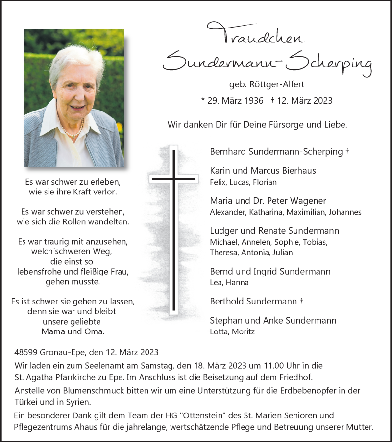 Hier finden Sie alle Traueranzeigen aus der Zeitung, die bisher für erschienen sind. Weitere Traueranzeigen, die in der Zeitung erscheinen, werden hier ebenfalls aufgelistet