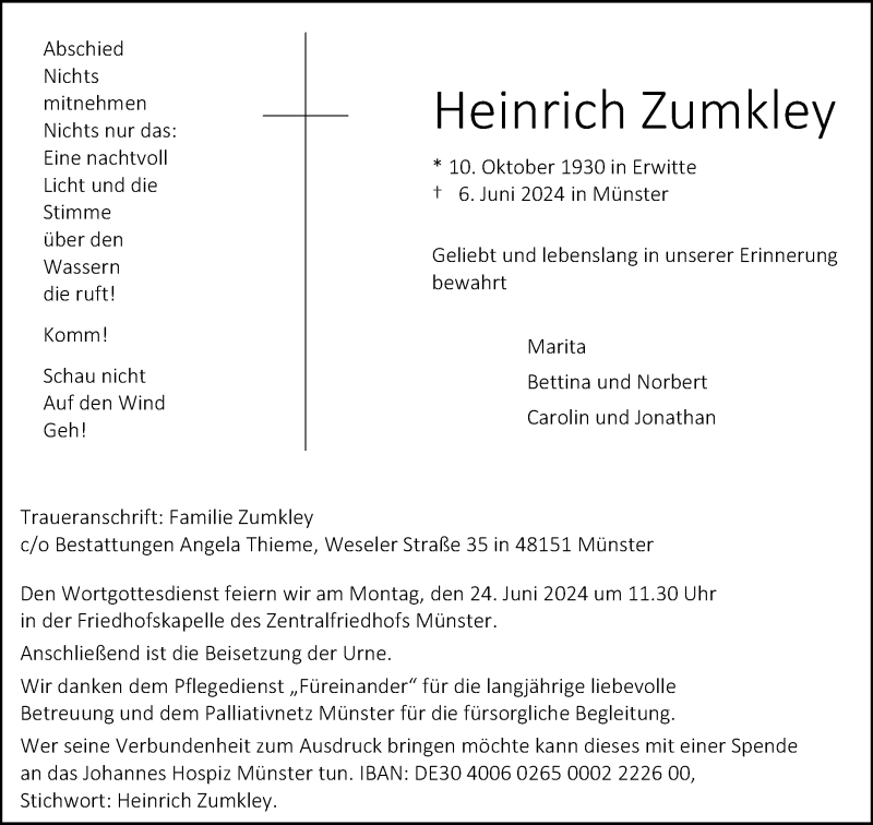 Hier finden Sie alle Traueranzeigen aus der Zeitung, die bisher für Heinrich Zumkley erschienen sind. Weitere Traueranzeigen, die in der Zeitung erscheinen, werden hier ebenfalls aufgelistet