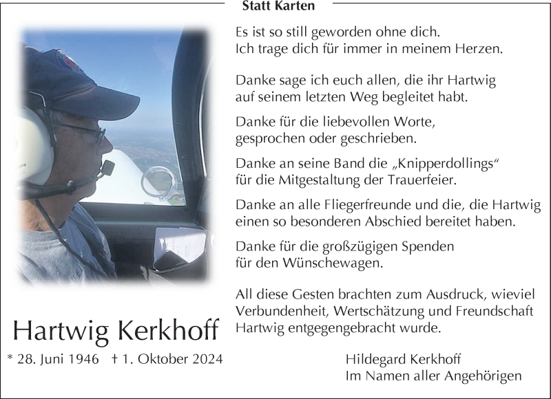 Hier finden Sie alle Traueranzeigen aus der Zeitung, die bisher für Hartwig Kerkhoff erschienen sind. Weitere Traueranzeigen, die in der Zeitung erscheinen, werden hier ebenfalls aufgelistet