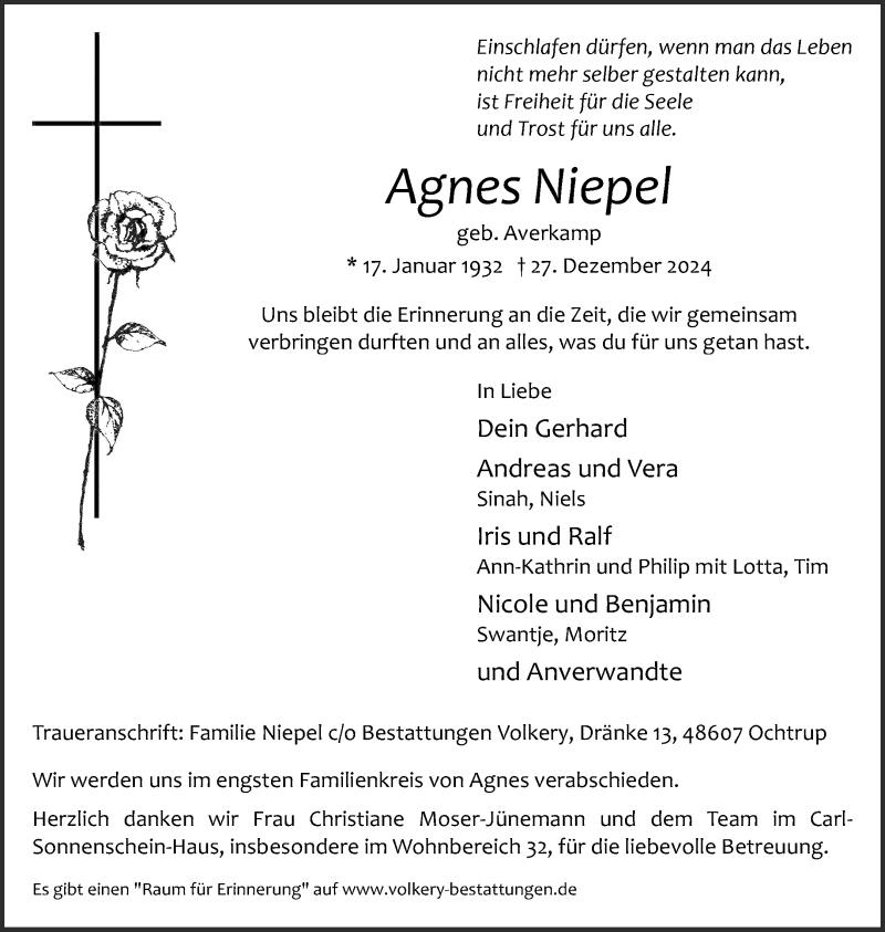 Hier finden Sie alle Traueranzeigen aus der Zeitung, die bisher für Agnes Niepel erschienen sind. Weitere Traueranzeigen, die in der Zeitung erscheinen, werden hier ebenfalls aufgelistet