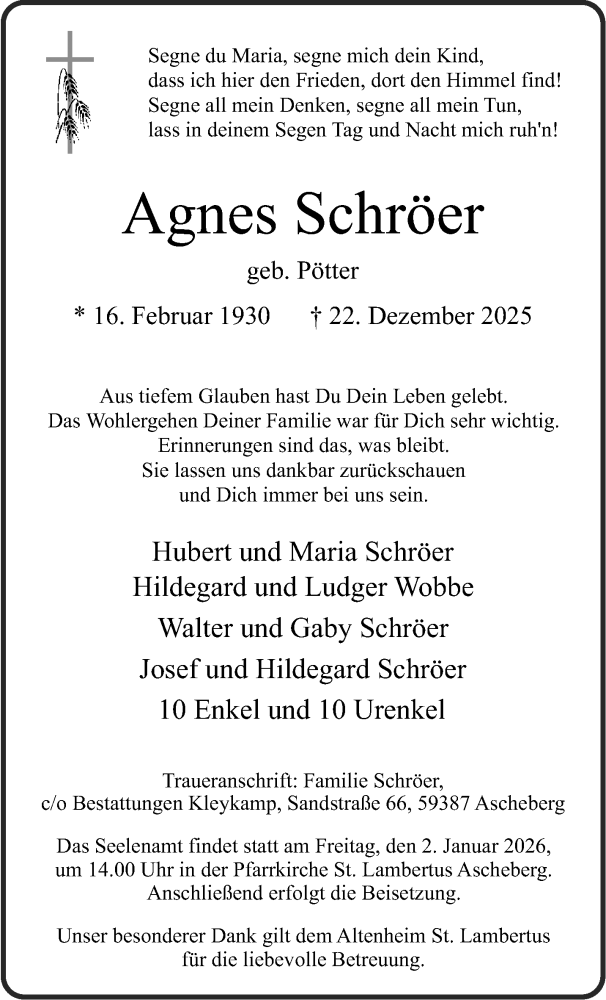 Hier finden Sie alle Traueranzeigen aus der Zeitung, die bisher für Agnes Schröer erschienen sind. Weitere Traueranzeigen, die in der Zeitung erscheinen, werden hier ebenfalls aufgelistet