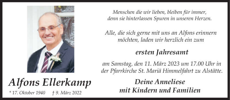 Hier finden Sie alle Traueranzeigen aus der Zeitung, die bisher für Alfons Ellerkamp erschienen sind. Weitere Traueranzeigen, die in der Zeitung erscheinen, werden hier ebenfalls aufgelistet