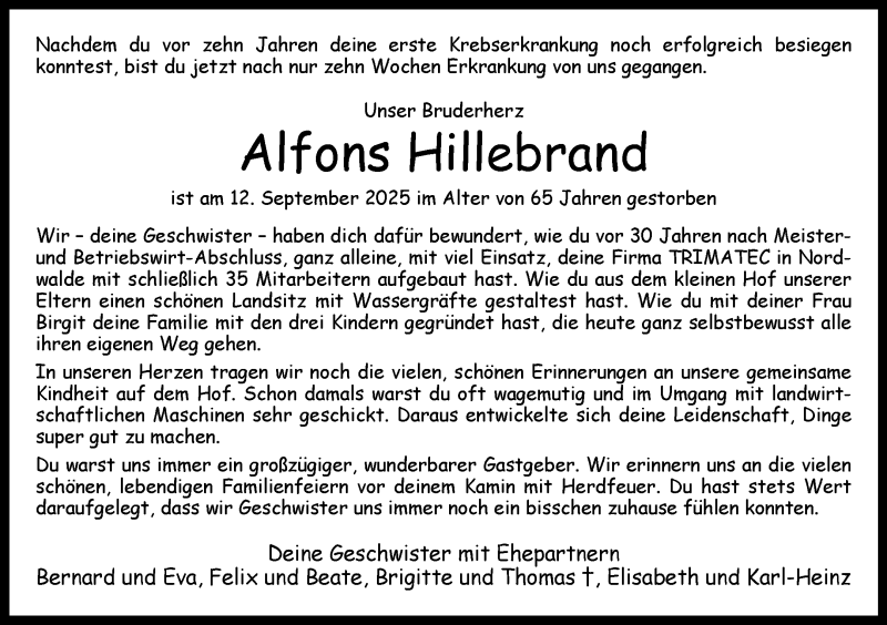 Hier finden Sie alle Traueranzeigen aus der Zeitung, die bisher für Alfons Hillebrand erschienen sind. Weitere Traueranzeigen, die in der Zeitung erscheinen, werden hier ebenfalls aufgelistet