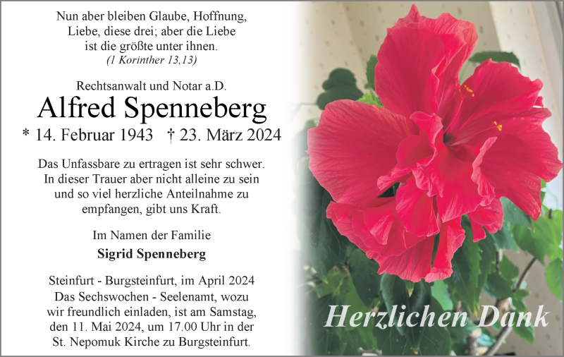 Hier finden Sie alle Traueranzeigen aus der Zeitung, die bisher für Alfred Spenneberg erschienen sind. Weitere Traueranzeigen, die in der Zeitung erscheinen, werden hier ebenfalls aufgelistet