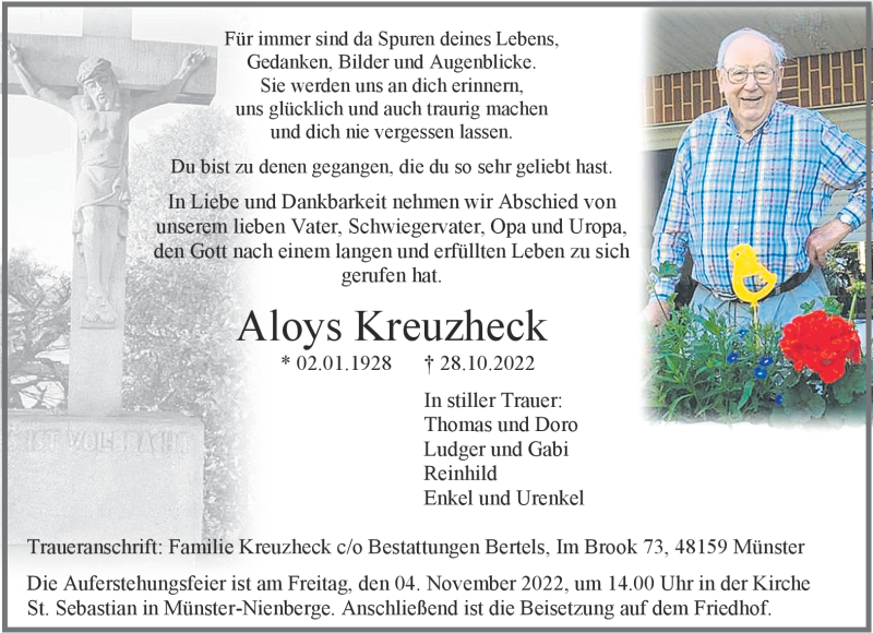 Hier finden Sie alle Traueranzeigen aus der Zeitung, die bisher für Aloys Kreuzheck erschienen sind. Weitere Traueranzeigen, die in der Zeitung erscheinen, werden hier ebenfalls aufgelistet
