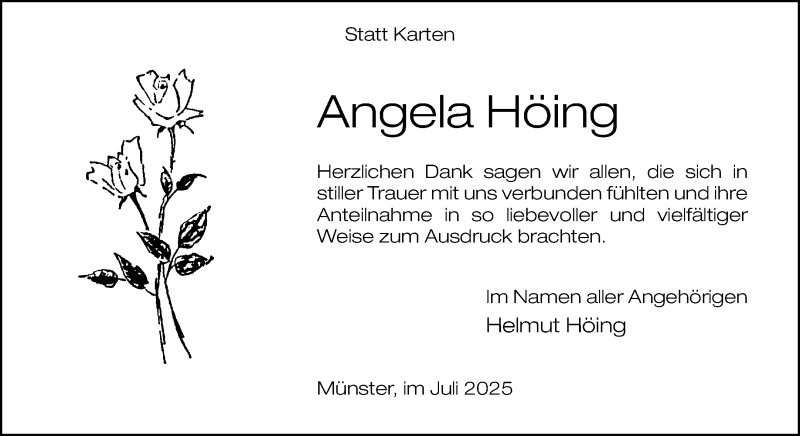 Hier finden Sie alle Traueranzeigen aus der Zeitung, die bisher für Angela Höing erschienen sind. Weitere Traueranzeigen, die in der Zeitung erscheinen, werden hier ebenfalls aufgelistet