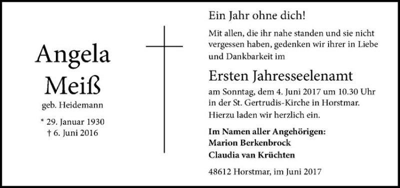 Hier finden Sie alle Traueranzeigen aus der Zeitung, die bisher für Angela Meiß erschienen sind. Weitere Traueranzeigen, die in der Zeitung erscheinen, werden hier ebenfalls aufgelistet