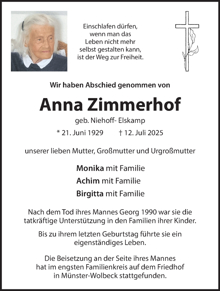 Hier finden Sie alle Traueranzeigen aus der Zeitung, die bisher für Anna Zimmerhof erschienen sind. Weitere Traueranzeigen, die in der Zeitung erscheinen, werden hier ebenfalls aufgelistet