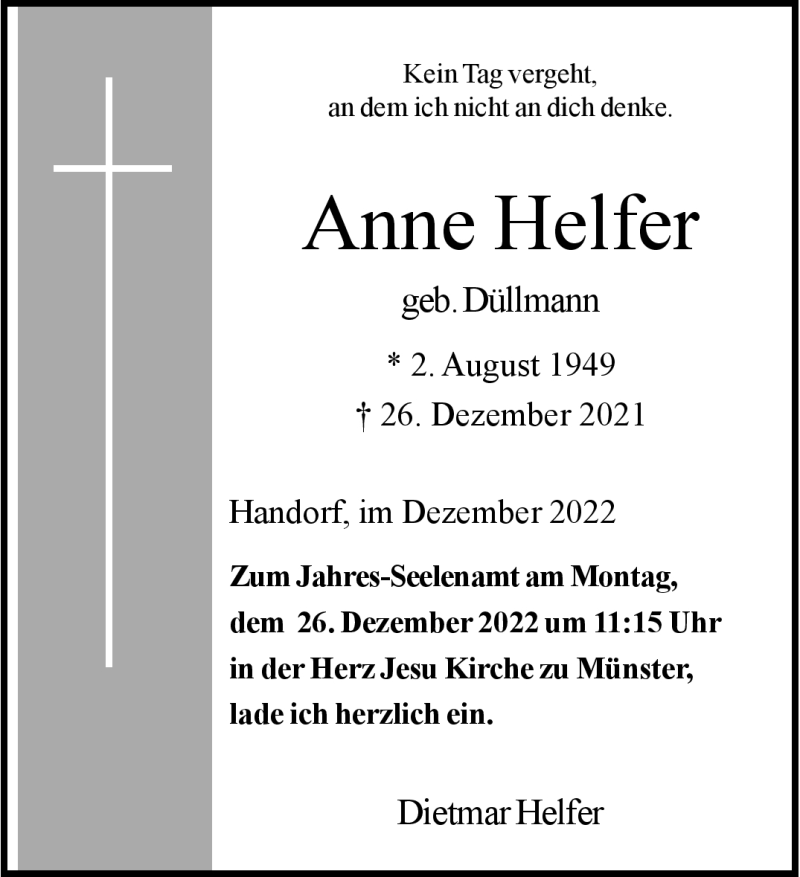 Hier finden Sie alle Traueranzeigen aus der Zeitung, die bisher für Anne Helfer erschienen sind. Weitere Traueranzeigen, die in der Zeitung erscheinen, werden hier ebenfalls aufgelistet