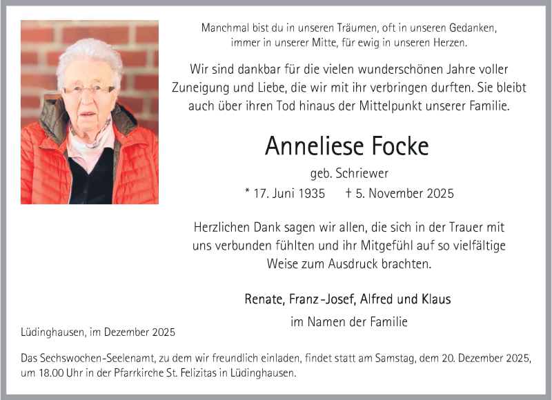 Hier finden Sie alle Traueranzeigen aus der Zeitung, die bisher für Anneliese Focke erschienen sind. Weitere Traueranzeigen, die in der Zeitung erscheinen, werden hier ebenfalls aufgelistet