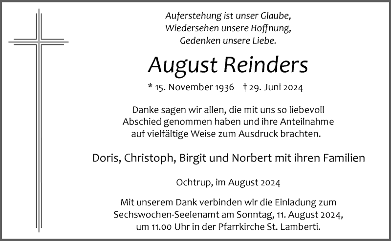 Hier finden Sie alle Traueranzeigen aus der Zeitung, die bisher für August Reinders erschienen sind. Weitere Traueranzeigen, die in der Zeitung erscheinen, werden hier ebenfalls aufgelistet