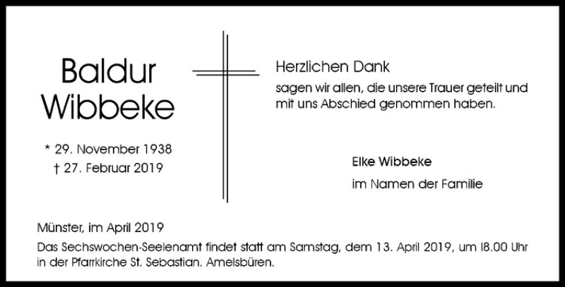 Hier finden Sie alle Traueranzeigen aus der Zeitung, die bisher für Baldur Wibbeke erschienen sind. Weitere Traueranzeigen, die in der Zeitung erscheinen, werden hier ebenfalls aufgelistet