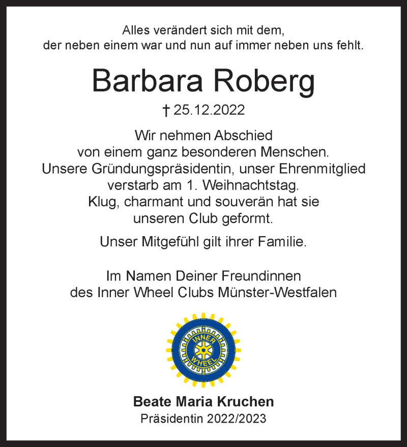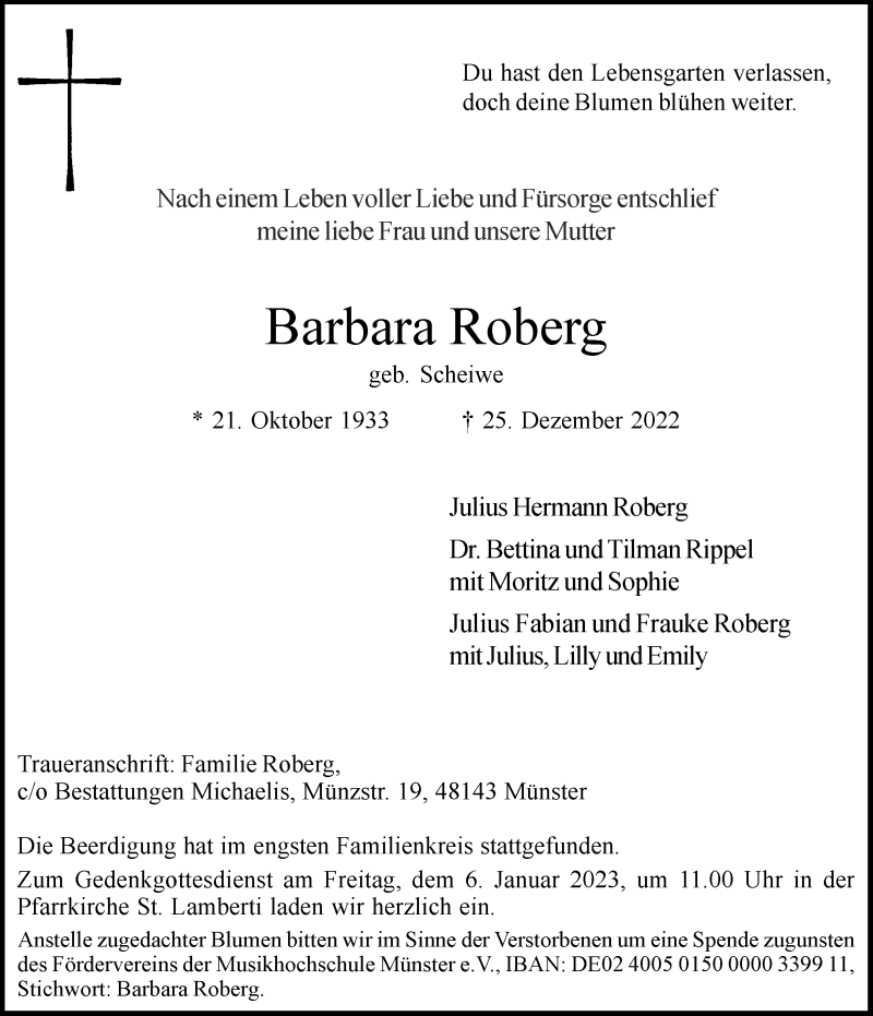 Hier finden Sie alle Traueranzeigen aus der Zeitung, die bisher für Barbara Roberg erschienen sind. Weitere Traueranzeigen, die in der Zeitung erscheinen, werden hier ebenfalls aufgelistet