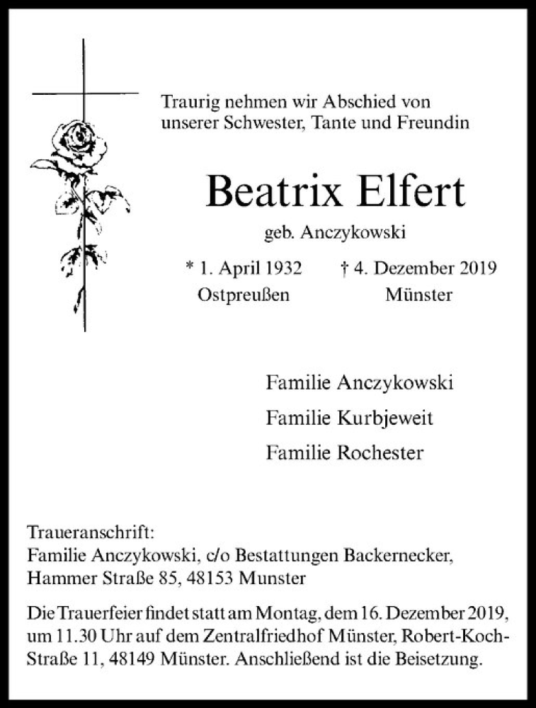 Hier finden Sie alle Traueranzeigen aus der Zeitung, die bisher für Beatrix Elfert erschienen sind. Weitere Traueranzeigen, die in der Zeitung erscheinen, werden hier ebenfalls aufgelistet