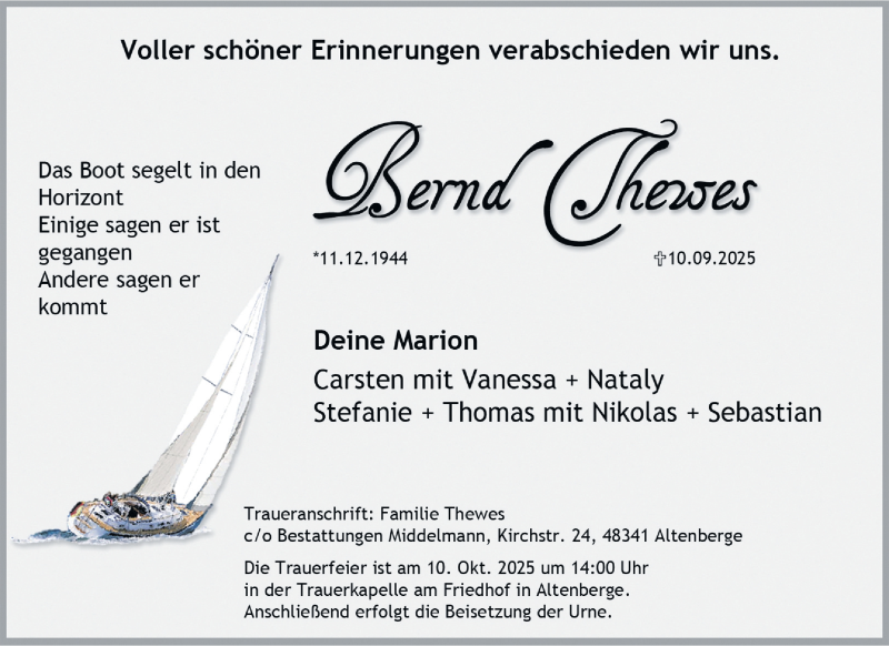 Hier finden Sie alle Traueranzeigen aus der Zeitung, die bisher für Berna Thewes erschienen sind. Weitere Traueranzeigen, die in der Zeitung erscheinen, werden hier ebenfalls aufgelistet