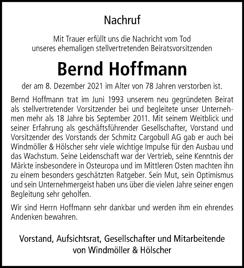 Hier finden Sie alle Traueranzeigen aus der Zeitung, die bisher für Bernd Hoffmann erschienen sind. Weitere Traueranzeigen, die in der Zeitung erscheinen, werden hier ebenfalls aufgelistet