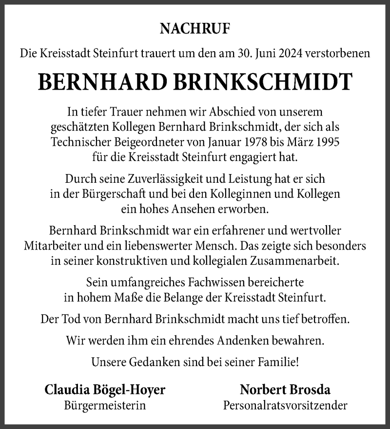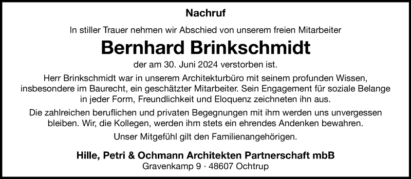 Hier finden Sie alle Traueranzeigen aus der Zeitung, die bisher für Bernhard Brinkschmidt erschienen sind. Weitere Traueranzeigen, die in der Zeitung erscheinen, werden hier ebenfalls aufgelistet