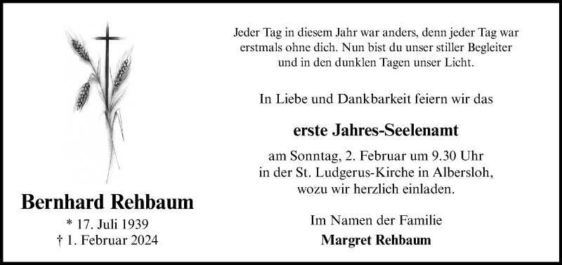 Hier finden Sie alle Traueranzeigen aus der Zeitung, die bisher für Bernhard Rehbaum erschienen sind. Weitere Traueranzeigen, die in der Zeitung erscheinen, werden hier ebenfalls aufgelistet