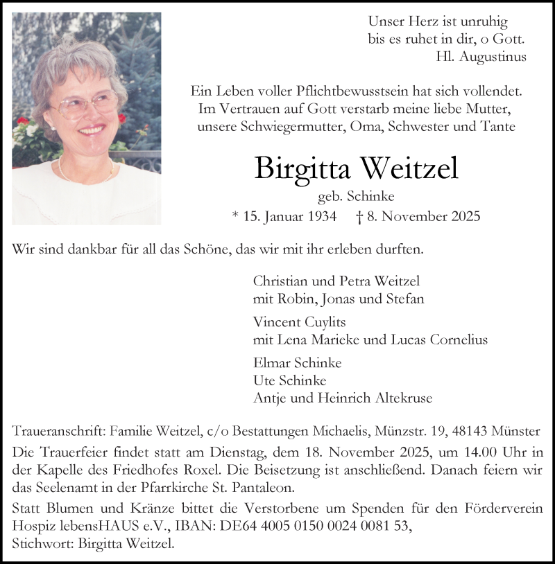 Hier finden Sie alle Traueranzeigen aus der Zeitung, die bisher für Birgitta Weitzel erschienen sind. Weitere Traueranzeigen, die in der Zeitung erscheinen, werden hier ebenfalls aufgelistet