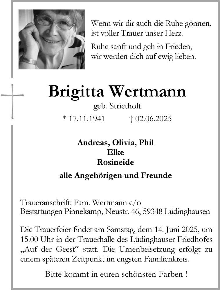 Hier finden Sie alle Traueranzeigen aus der Zeitung, die bisher für Brigitta Wertmann erschienen sind. Weitere Traueranzeigen, die in der Zeitung erscheinen, werden hier ebenfalls aufgelistet