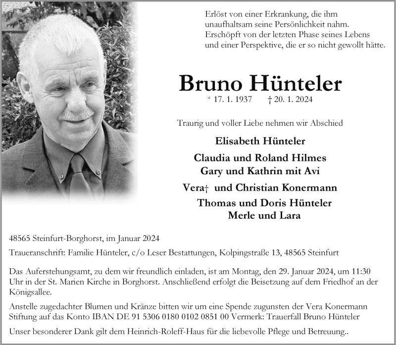 Hier finden Sie alle Traueranzeigen aus der Zeitung, die bisher für Bruno Hünteler erschienen sind. Weitere Traueranzeigen, die in der Zeitung erscheinen, werden hier ebenfalls aufgelistet
