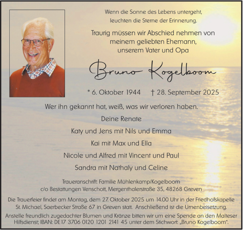 Hier finden Sie alle Traueranzeigen aus der Zeitung, die bisher für Bruno Kogelboom erschienen sind. Weitere Traueranzeigen, die in der Zeitung erscheinen, werden hier ebenfalls aufgelistet