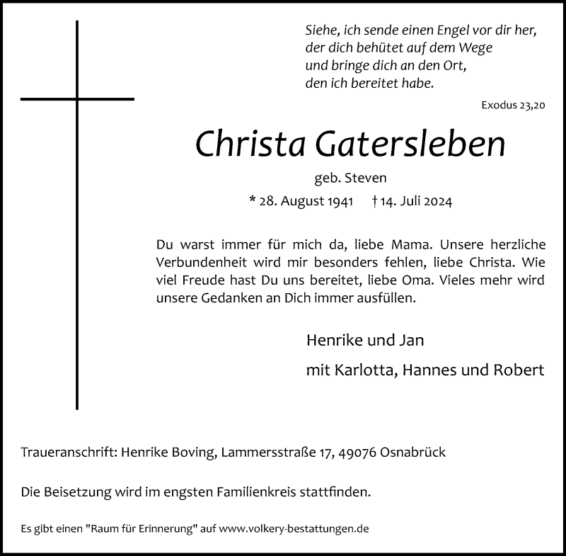Hier finden Sie alle Traueranzeigen aus der Zeitung, die bisher für Christa Gatersleben erschienen sind. Weitere Traueranzeigen, die in der Zeitung erscheinen, werden hier ebenfalls aufgelistet