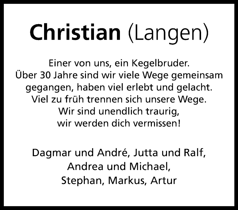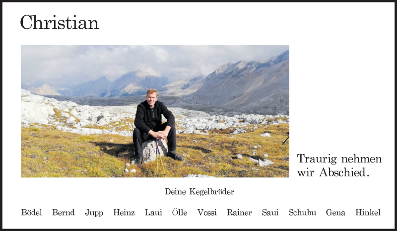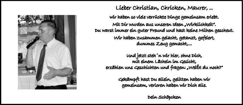 Hier finden Sie alle Traueranzeigen aus der Zeitung, die bisher für Christian Führer erschienen sind. Weitere Traueranzeigen, die in der Zeitung erscheinen, werden hier ebenfalls aufgelistet