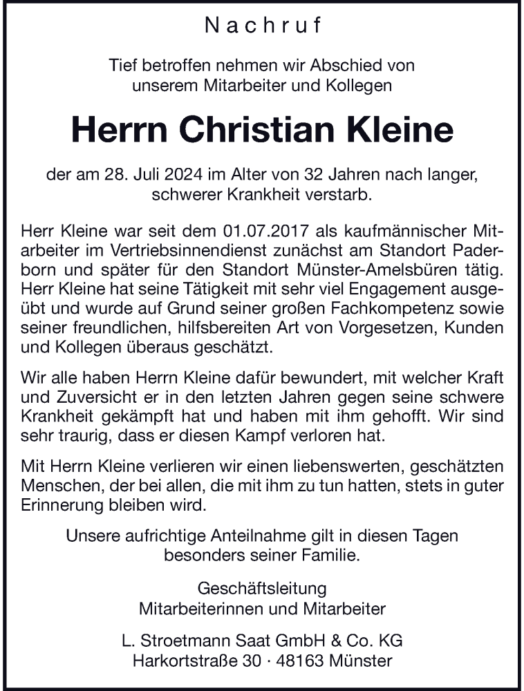 Hier finden Sie alle Traueranzeigen aus der Zeitung, die bisher für Christian Kleine erschienen sind. Weitere Traueranzeigen, die in der Zeitung erscheinen, werden hier ebenfalls aufgelistet