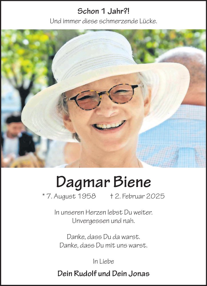 Hier finden Sie alle Traueranzeigen aus der Zeitung, die bisher für Dagmar Biene erschienen sind. Weitere Traueranzeigen, die in der Zeitung erscheinen, werden hier ebenfalls aufgelistet