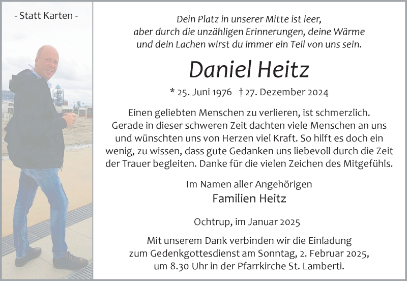 Hier finden Sie alle Traueranzeigen aus der Zeitung, die bisher für Daniel Heitz erschienen sind. Weitere Traueranzeigen, die in der Zeitung erscheinen, werden hier ebenfalls aufgelistet
