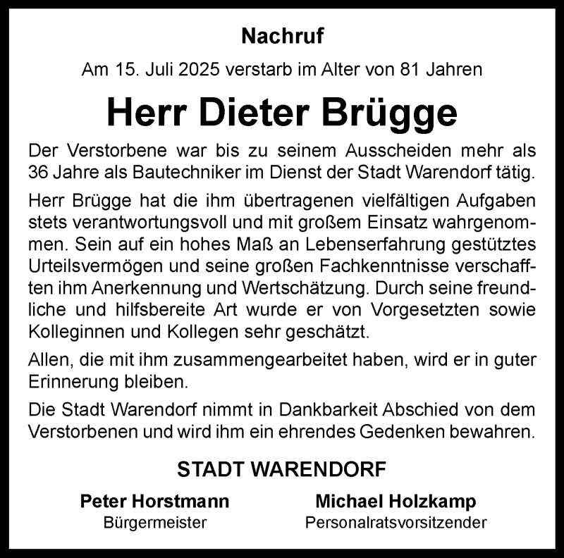 Hier finden Sie alle Traueranzeigen aus der Zeitung, die bisher für Dieter Brügge erschienen sind. Weitere Traueranzeigen, die in der Zeitung erscheinen, werden hier ebenfalls aufgelistet