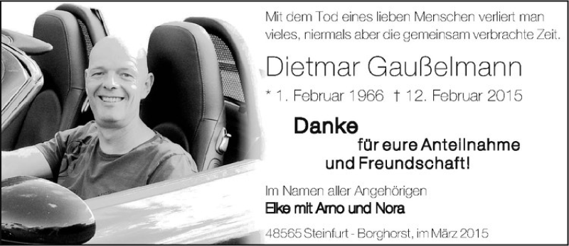 Hier finden Sie alle Traueranzeigen aus der Zeitung, die bisher für Dietmar Gaußelmann erschienen sind. Weitere Traueranzeigen, die in der Zeitung erscheinen, werden hier ebenfalls aufgelistet