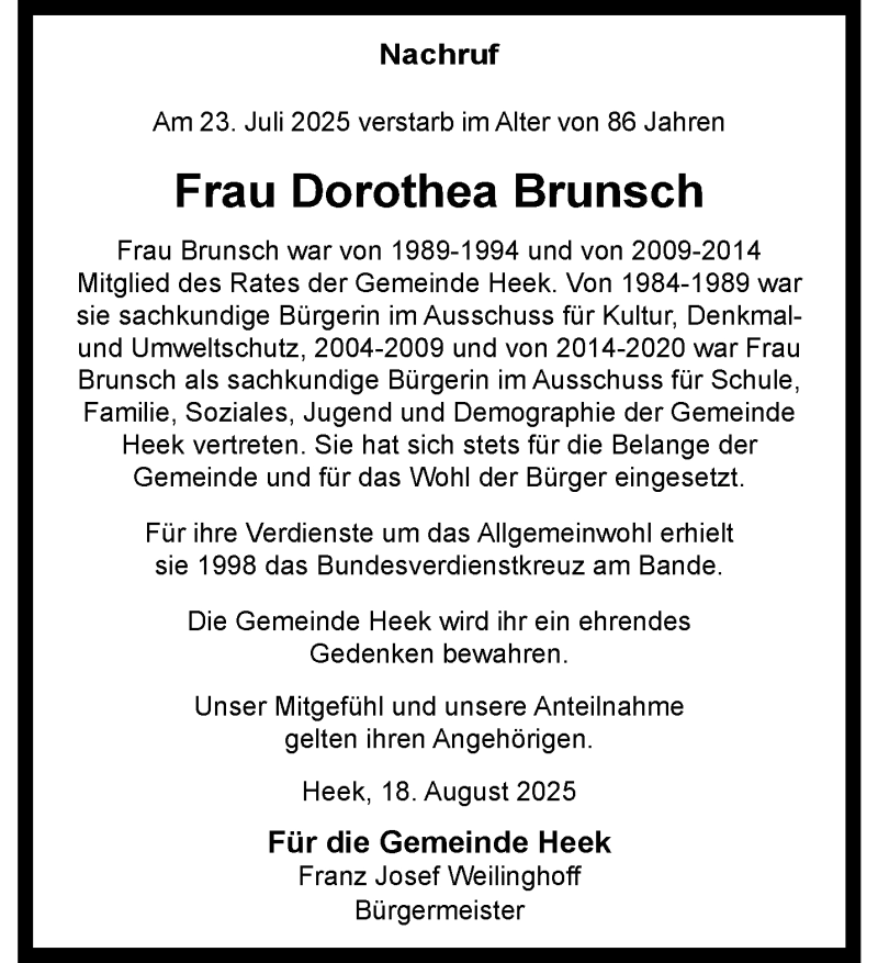 Hier finden Sie alle Traueranzeigen aus der Zeitung, die bisher für Dorothea Brunsch erschienen sind. Weitere Traueranzeigen, die in der Zeitung erscheinen, werden hier ebenfalls aufgelistet