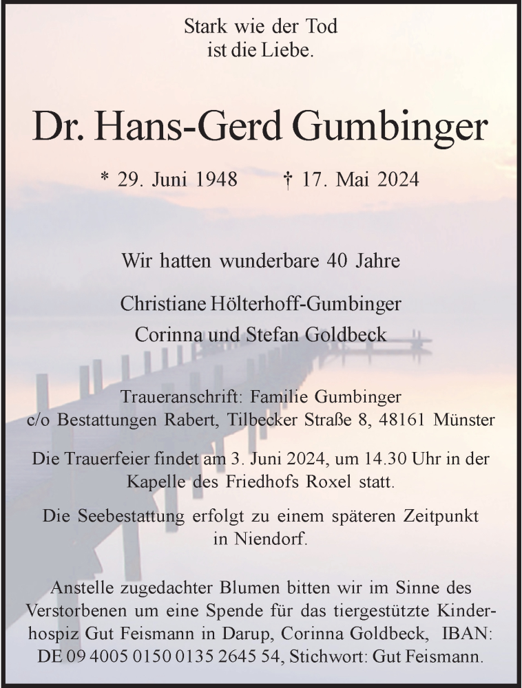 Hier finden Sie alle Traueranzeigen aus der Zeitung, die bisher für Dr. Hans-Gerd Gumbinger erschienen sind. Weitere Traueranzeigen, die in der Zeitung erscheinen, werden hier ebenfalls aufgelistet