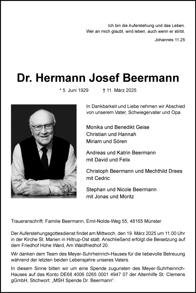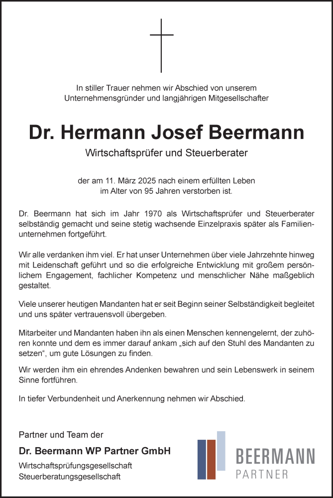 Hier finden Sie alle Traueranzeigen aus der Zeitung, die bisher für Dr. Hermann Josef Beermann erschienen sind. Weitere Traueranzeigen, die in der Zeitung erscheinen, werden hier ebenfalls aufgelistet