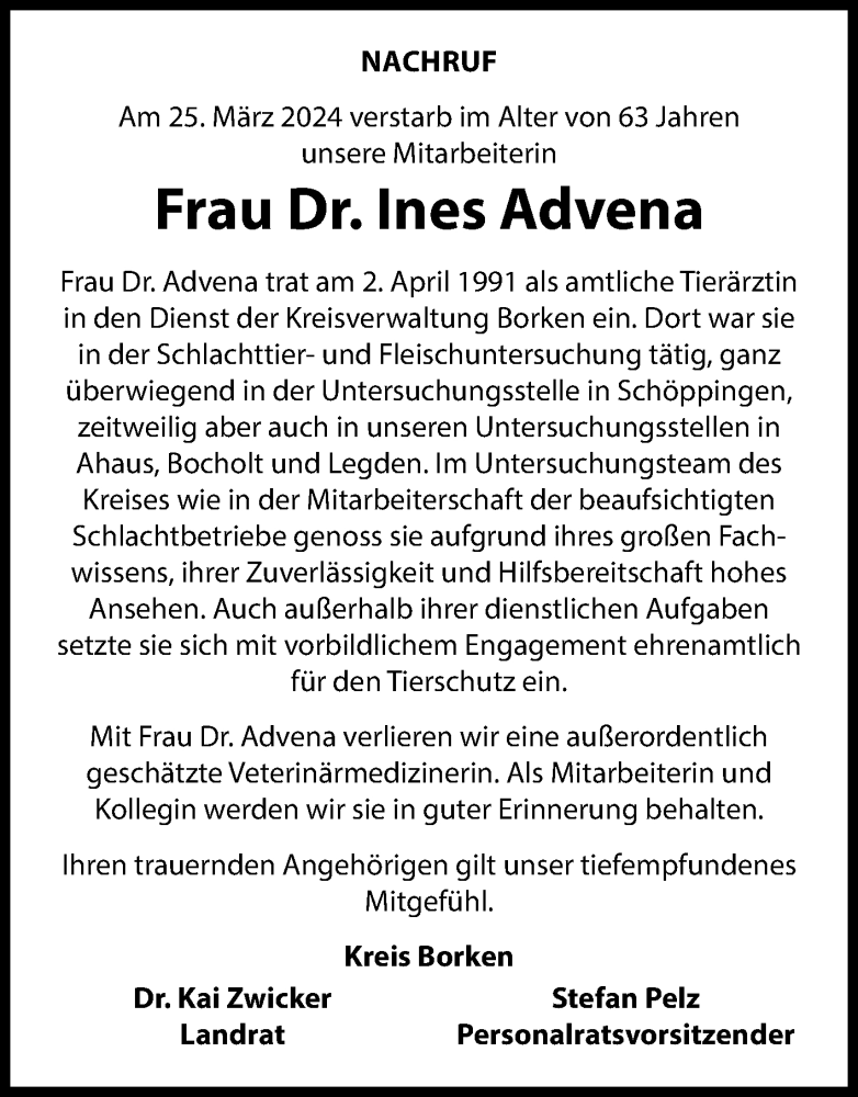 Hier finden Sie alle Traueranzeigen aus der Zeitung, die bisher für Dr. Ines Advena erschienen sind. Weitere Traueranzeigen, die in der Zeitung erscheinen, werden hier ebenfalls aufgelistet
