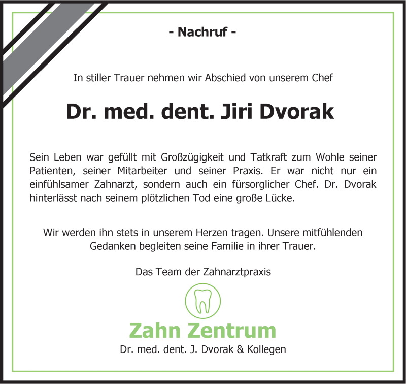 Hier finden Sie alle Traueranzeigen aus der Zeitung, die bisher für Dr. med. Dent. Jiri Dvorak erschienen sind. Weitere Traueranzeigen, die in der Zeitung erscheinen, werden hier ebenfalls aufgelistet