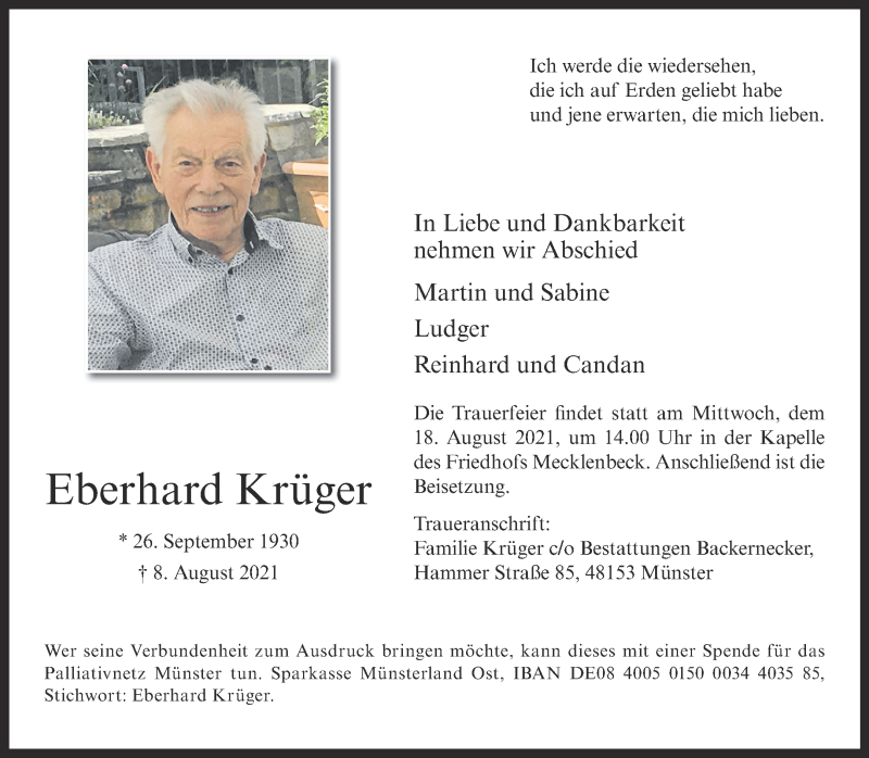 Hier finden Sie alle Traueranzeigen aus der Zeitung, die bisher für Eberhard Krüger erschienen sind. Weitere Traueranzeigen, die in der Zeitung erscheinen, werden hier ebenfalls aufgelistet