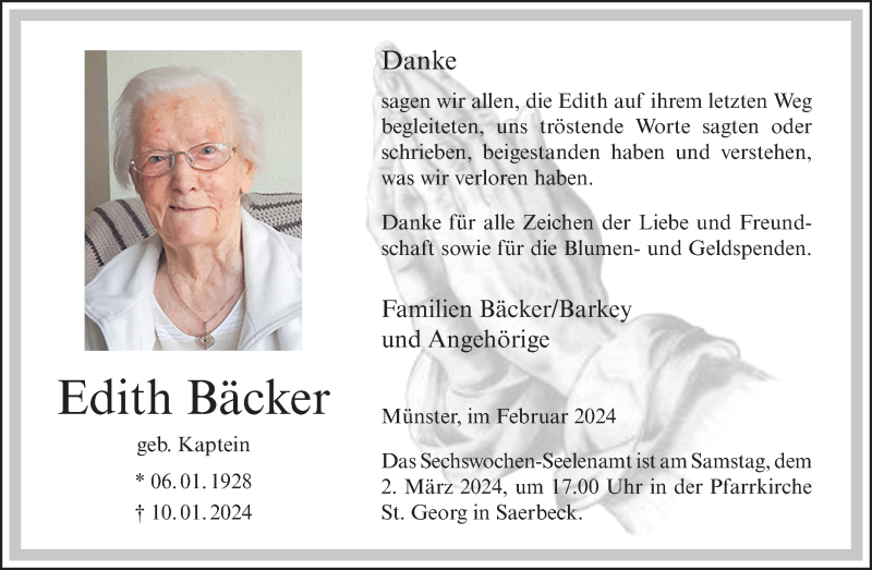 Hier finden Sie alle Traueranzeigen aus der Zeitung, die bisher für Edith Bäcker erschienen sind. Weitere Traueranzeigen, die in der Zeitung erscheinen, werden hier ebenfalls aufgelistet