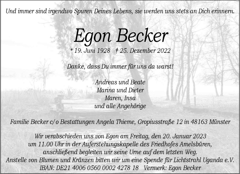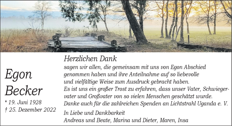 Hier finden Sie alle Traueranzeigen aus der Zeitung, die bisher für Egon Becker erschienen sind. Weitere Traueranzeigen, die in der Zeitung erscheinen, werden hier ebenfalls aufgelistet