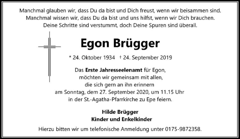 Hier finden Sie alle Traueranzeigen aus der Zeitung, die bisher für Egon Brügger erschienen sind. Weitere Traueranzeigen, die in der Zeitung erscheinen, werden hier ebenfalls aufgelistet