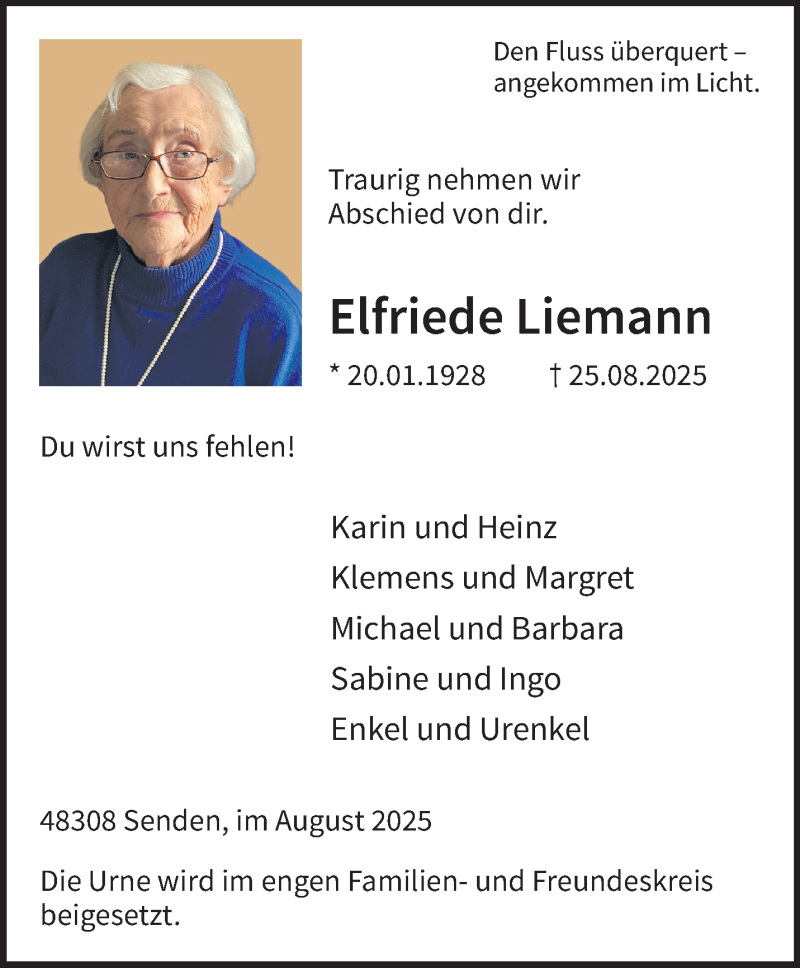 Hier finden Sie alle Traueranzeigen aus der Zeitung, die bisher für Elfriede Liemann erschienen sind. Weitere Traueranzeigen, die in der Zeitung erscheinen, werden hier ebenfalls aufgelistet
