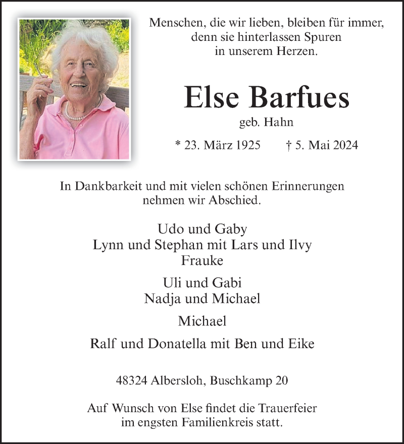 Hier finden Sie alle Traueranzeigen aus der Zeitung, die bisher für Else Barfues erschienen sind. Weitere Traueranzeigen, die in der Zeitung erscheinen, werden hier ebenfalls aufgelistet