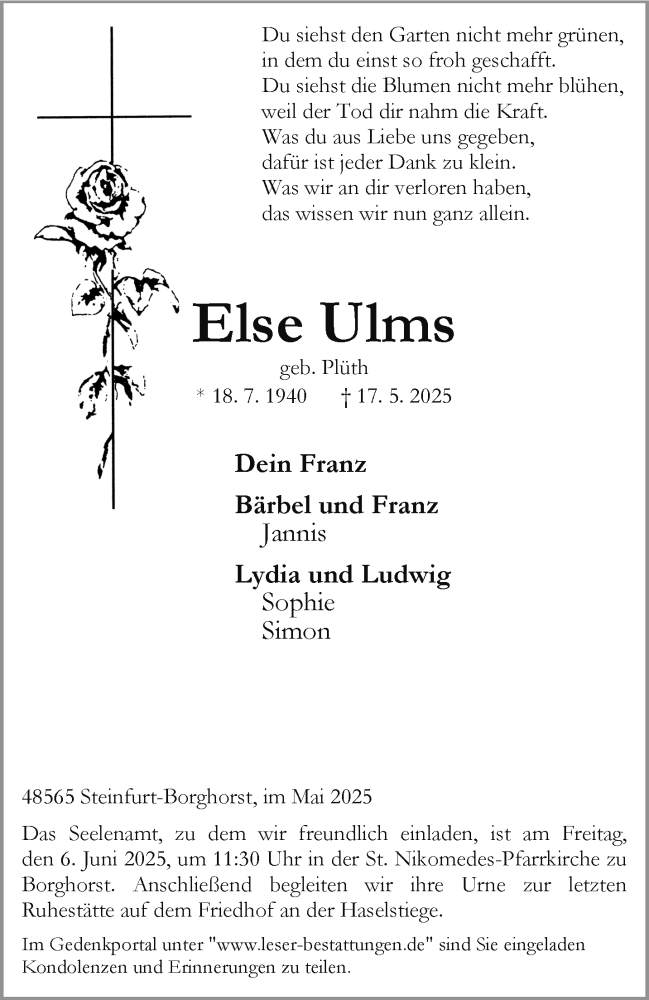 Hier finden Sie alle Traueranzeigen aus der Zeitung, die bisher für Else Ulms erschienen sind. Weitere Traueranzeigen, die in der Zeitung erscheinen, werden hier ebenfalls aufgelistet
