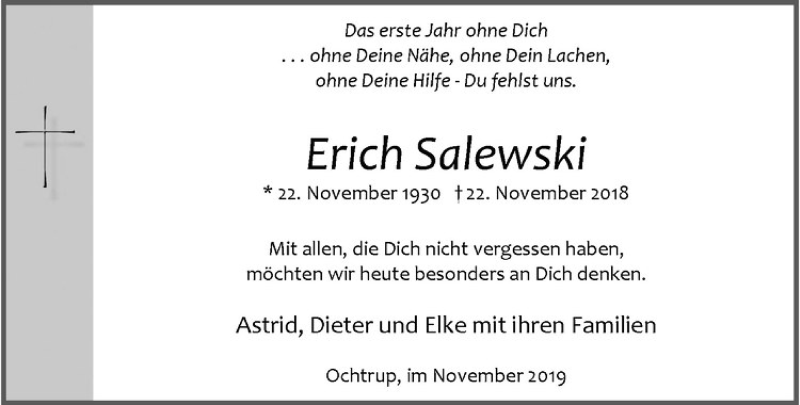 Hier finden Sie alle Traueranzeigen aus der Zeitung, die bisher für Erich Salewski erschienen sind. Weitere Traueranzeigen, die in der Zeitung erscheinen, werden hier ebenfalls aufgelistet