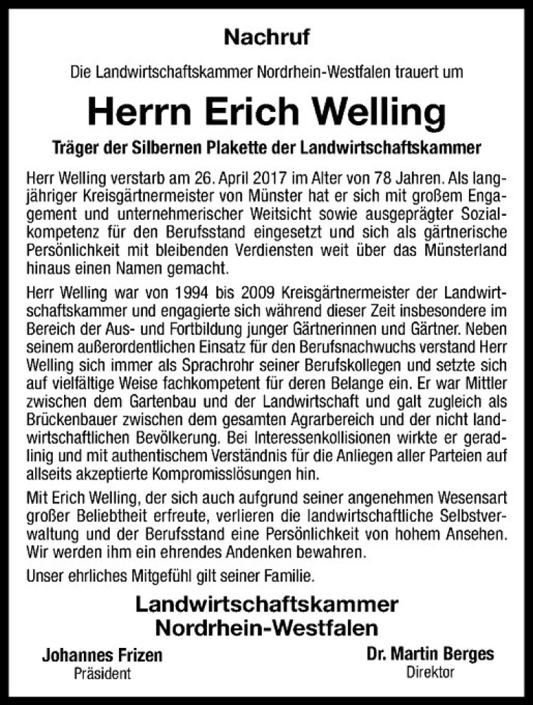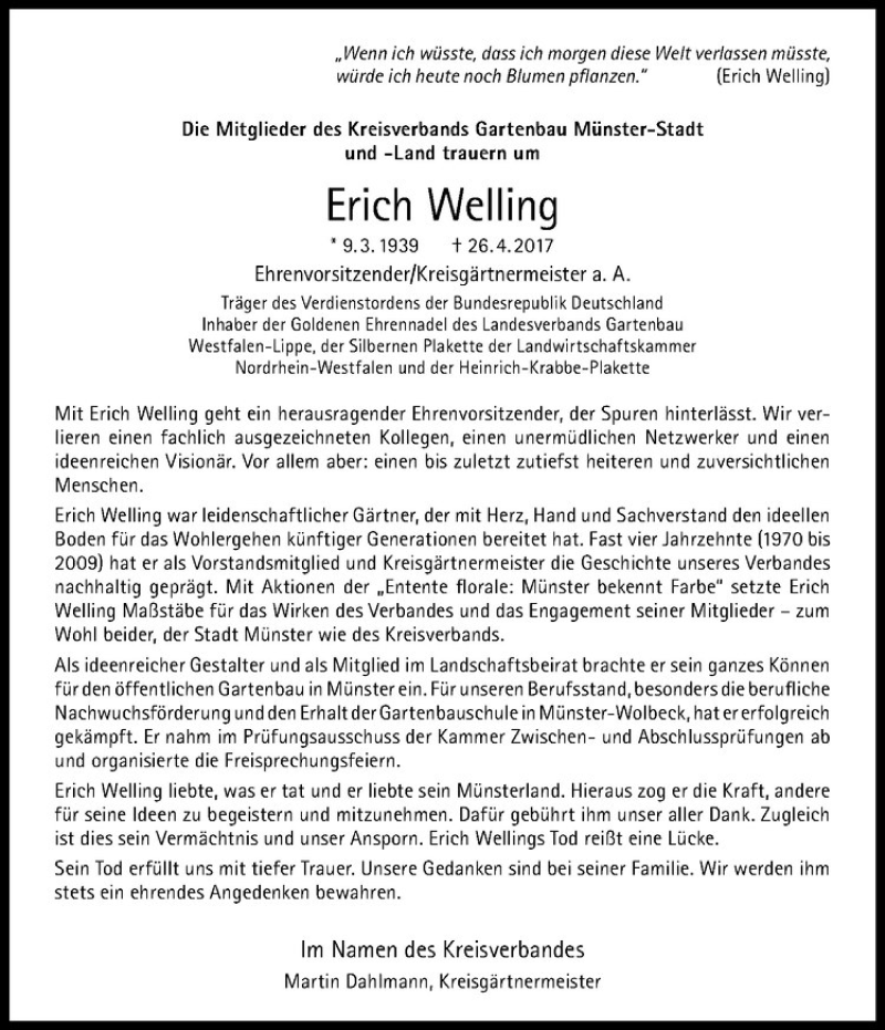 Hier finden Sie alle Traueranzeigen aus der Zeitung, die bisher für Erich Welling erschienen sind. Weitere Traueranzeigen, die in der Zeitung erscheinen, werden hier ebenfalls aufgelistet