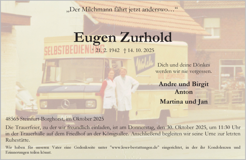 Hier finden Sie alle Traueranzeigen aus der Zeitung, die bisher für Eugen Zurhold erschienen sind. Weitere Traueranzeigen, die in der Zeitung erscheinen, werden hier ebenfalls aufgelistet